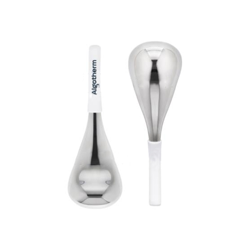 目元を中心に、顔の様々な面にフィットする形状のステンレス製のトリートメントツール。